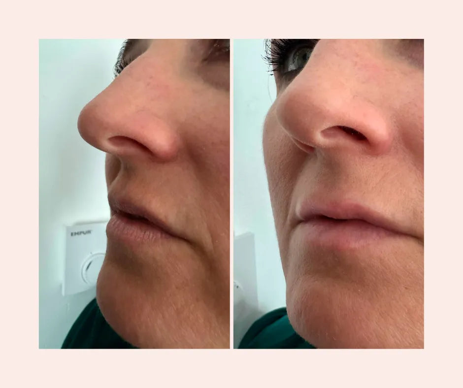 Las arrugas dinámicas causadas por las expresiones faciales (como las líneas verticales marcadas alrededor de la boca) se suavizan visiblemente. Este es un efecto puramente cosmético y reversible que preserva la naturalidad de las expresiones faciales a la vez que combate activamente la formación de arrugas profundas.